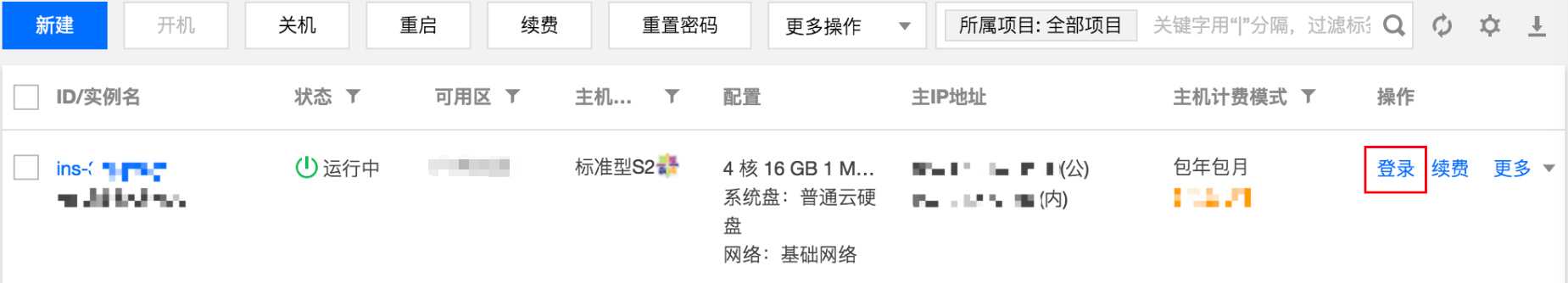 - 在 “云主机” 页面中,选择连接异常的 CVM 实例,单击登录。
