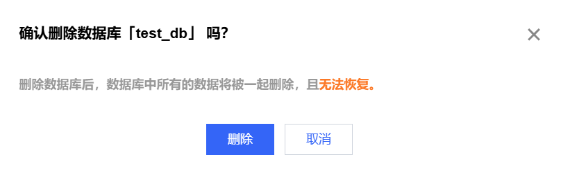 - 在删除确认弹框中点击“删除”完成数据库删除。