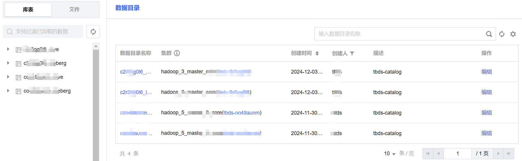 TBDS 支持集中查看和编辑经典集群中已经注册的数据目录,数据目录当前仅支持编辑目录描述。