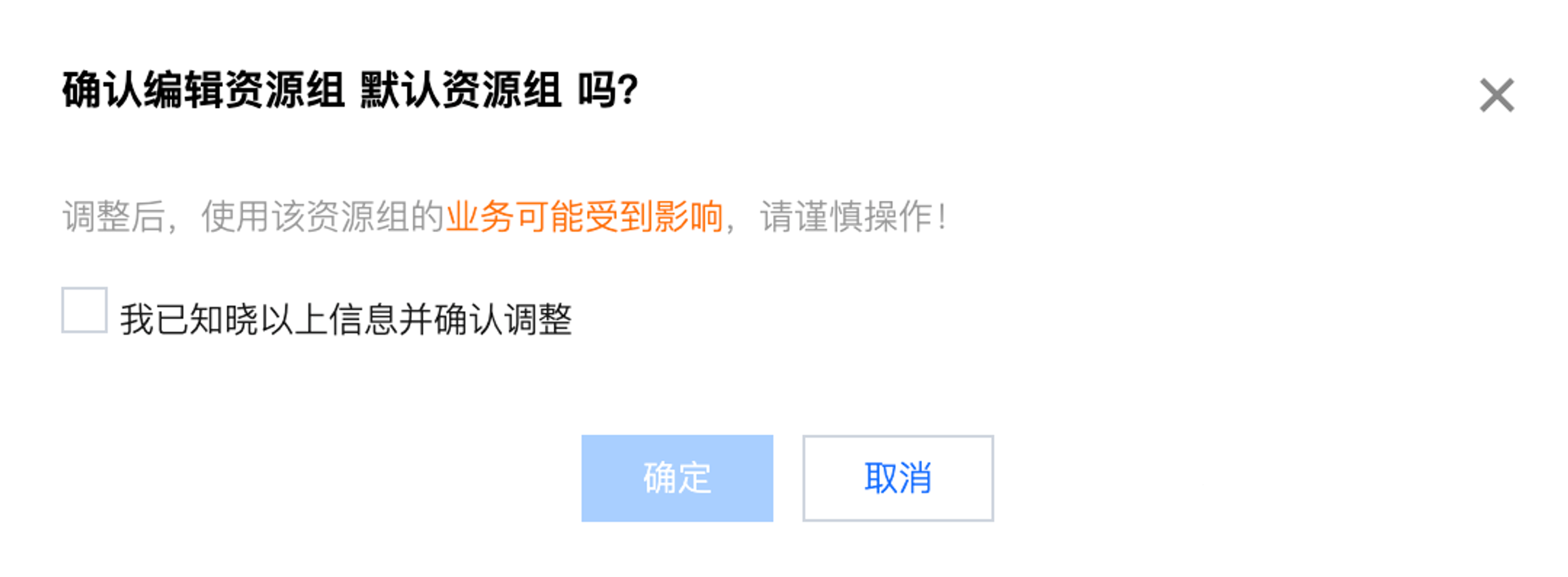 进入编辑资源组页面可对资源组名称、描述和资源进行修改,资源配置修改约束说明如下: