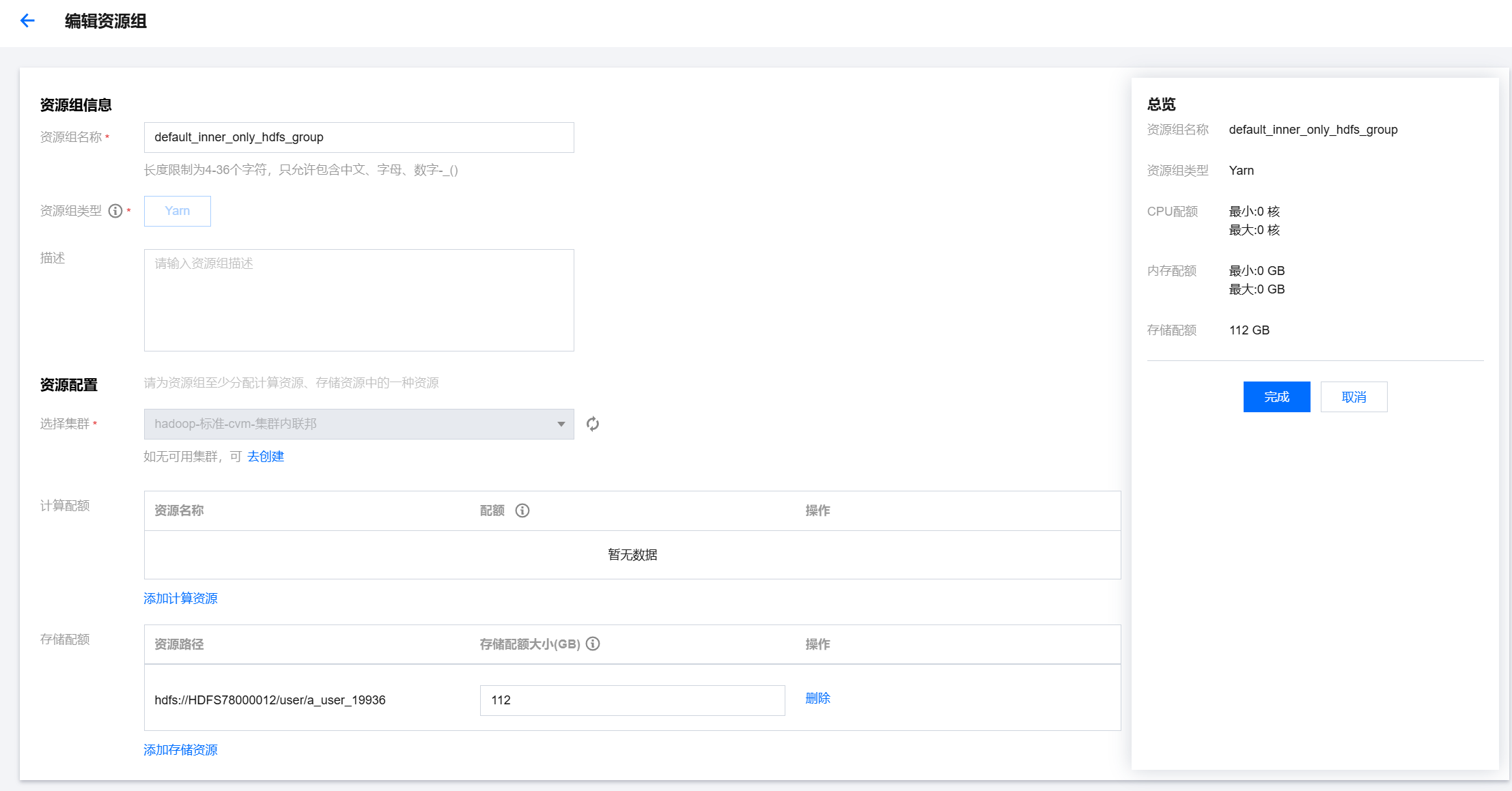 TBDS 支持对资源组的名称、描述和配额进行按需调整,方便用户根据实际业务需求灵活管理资源。