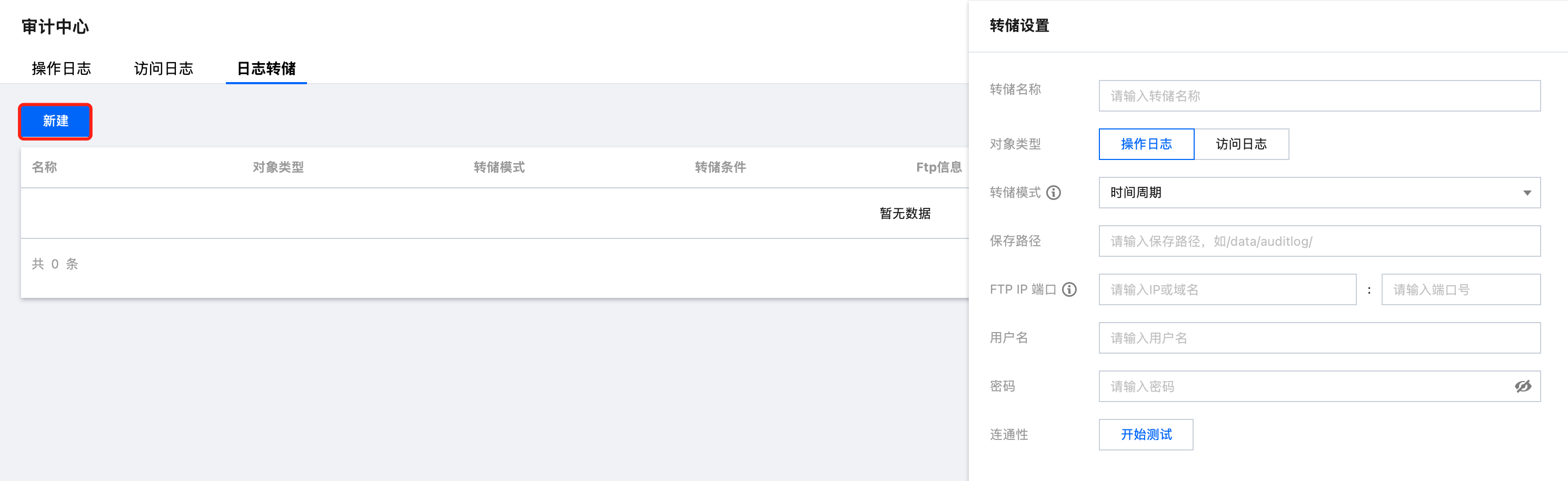 审计日志默认保存在TBDS自带的mysql和ES数据库中,如果长期保留可能引起数据目录的磁盘空间不足问题,管理员如果需要将审计日志保存到其他归档服务器,可以在日志转储模块设置转储参数及时自动转储,便于管理审计日志信息。