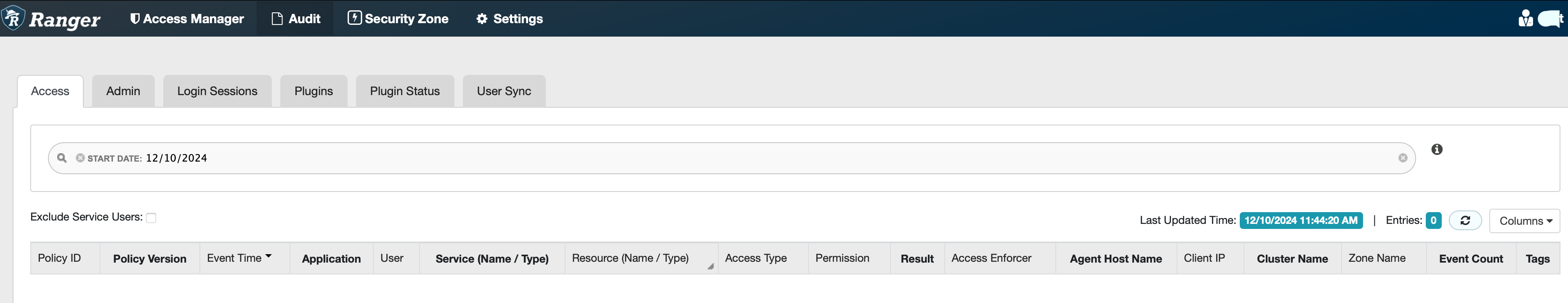 登录后可直接操作ranger audit页面如下,其中 Access中记录了用户对组件的操作内容和鉴权情况: