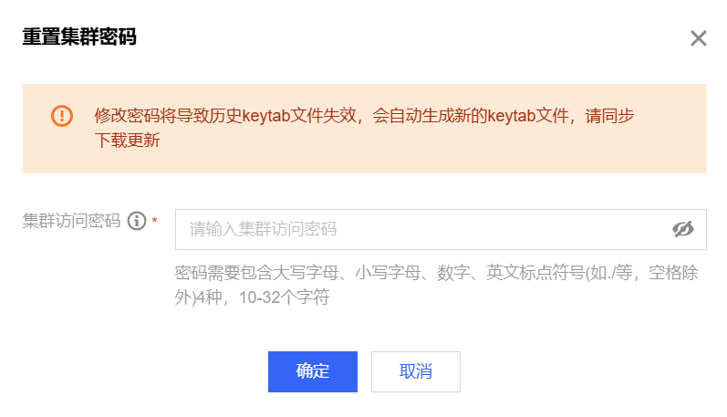 用户访问 TBDS 集群服务依赖“集群访问密码”,您可以在用户详情页面重置该密码,满足企业的安全要求。