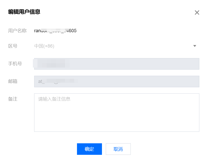 在编辑用户信息弹框中仅可以编辑备注信息,点