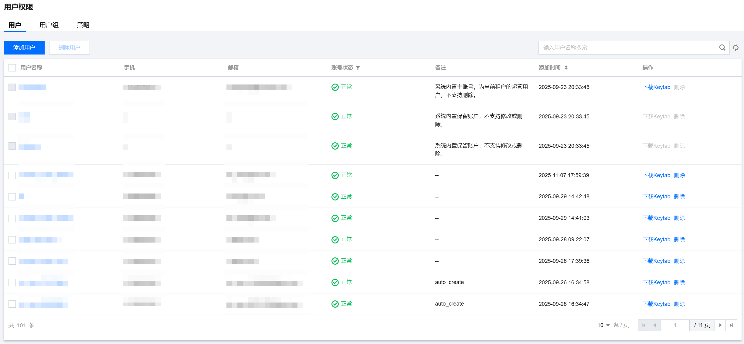 TBDS 支持对普通用户的基本信息进行编辑,仅支持编辑备注信息。