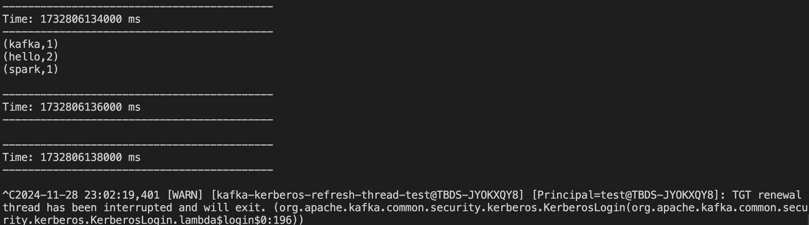 本教程演示的是:在 Kerberos 环境下,TBDS 集群运行 Spark Structured Streaming 作业来消费 Kafka 数据,实现统计单词个数,需要提前在集群中创建 Kafka Topic。更多说明请查看示例工程 README.md。