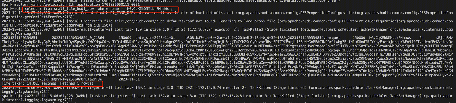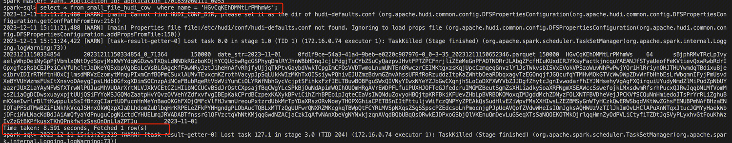 1. 数据查询语句:select * from small_file_hudi_cow where name = 'HGvCqKEhDMMtLrPMhmWs';