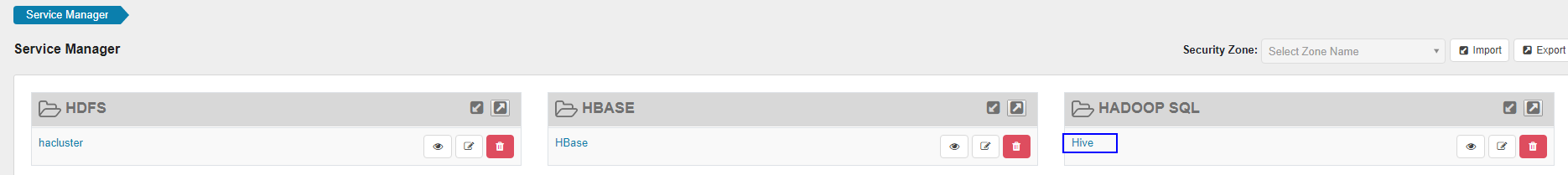登录Ranger WebUI界面,在首页中单击“HADOOP SQL”区域的“Hive”