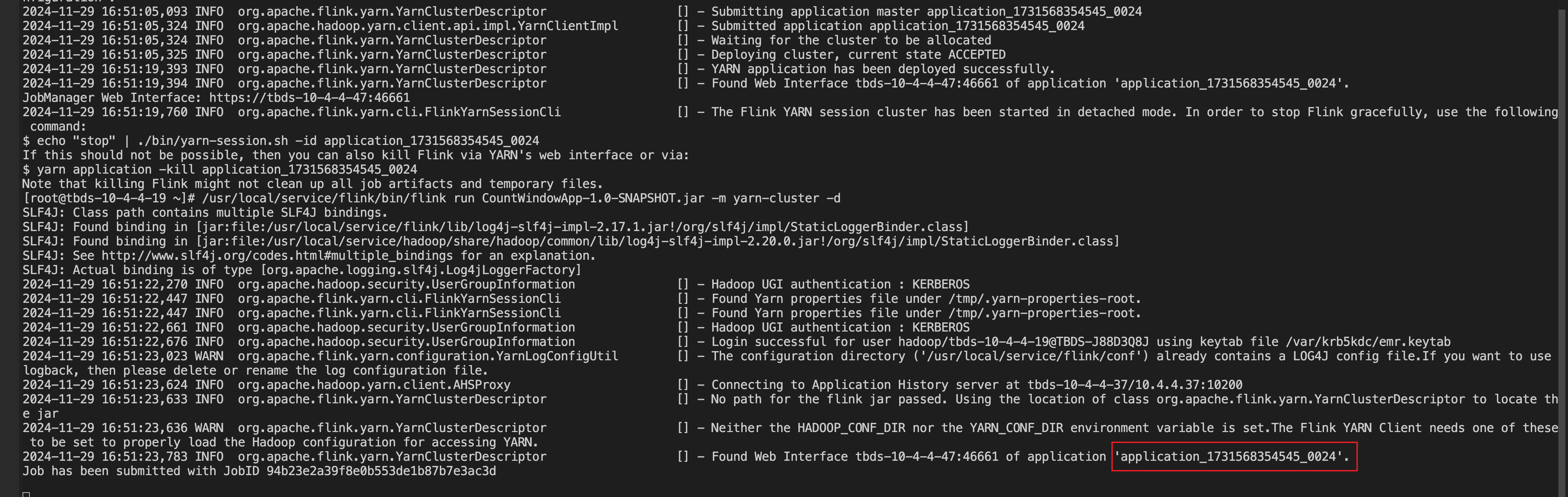 /usr/local/service/flink/bin/flink run CountWindowApp-1.0-SNAPSHOT.jar -m yarn-cluster -d
