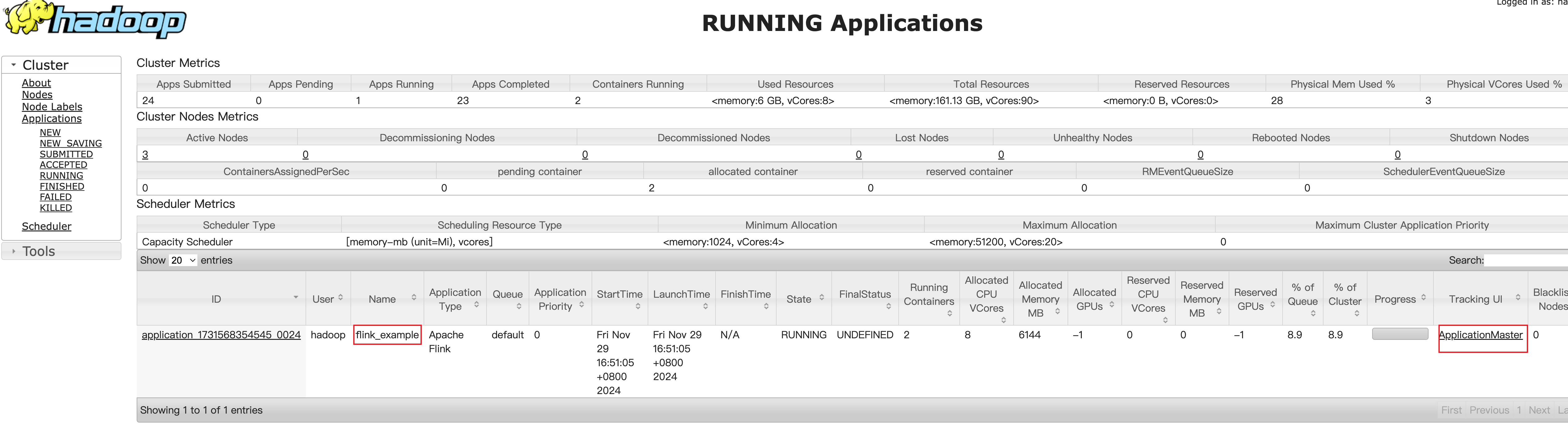 YARN UI 上找到对应的 Application,也可在 YARN UI界面跳转到Flink UI。