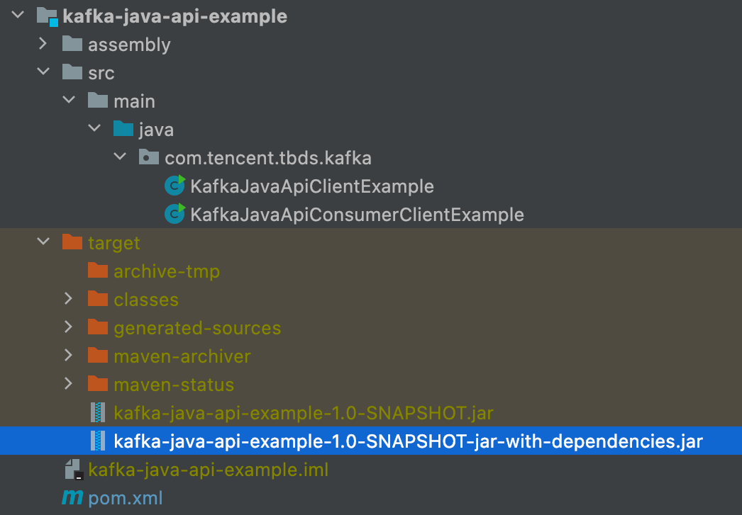 //参考示例工程 kafka-examples/kafka-java-api-example 打包出 kafka-java-api-example-1.0-SNAPSHOT-jar-with-dependencies.jar