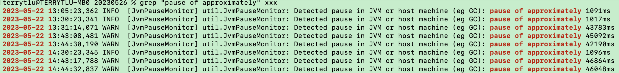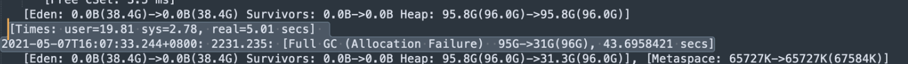 分析regionserver的GC日志(与RegionServer日志同一目录,默认在/data/emr/hbase/logs),存在Full GC耗时很长时(可能导致读写变慢),如图: