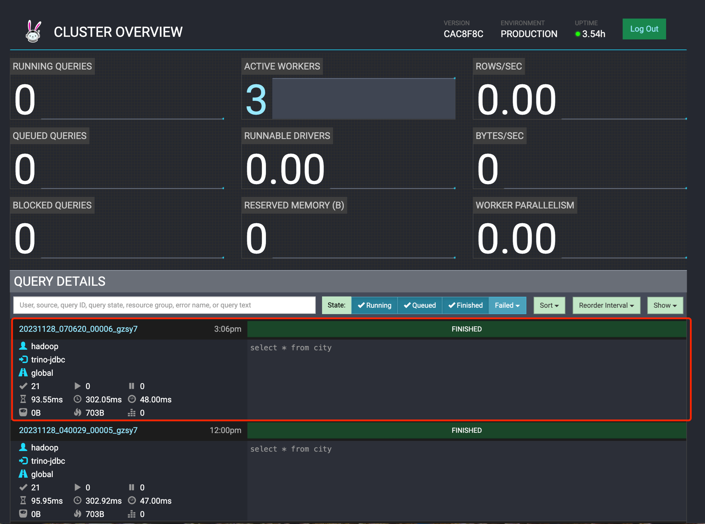 输入用户名和密码,通过查询WebUI可以查看查询任务的具体执行状态。