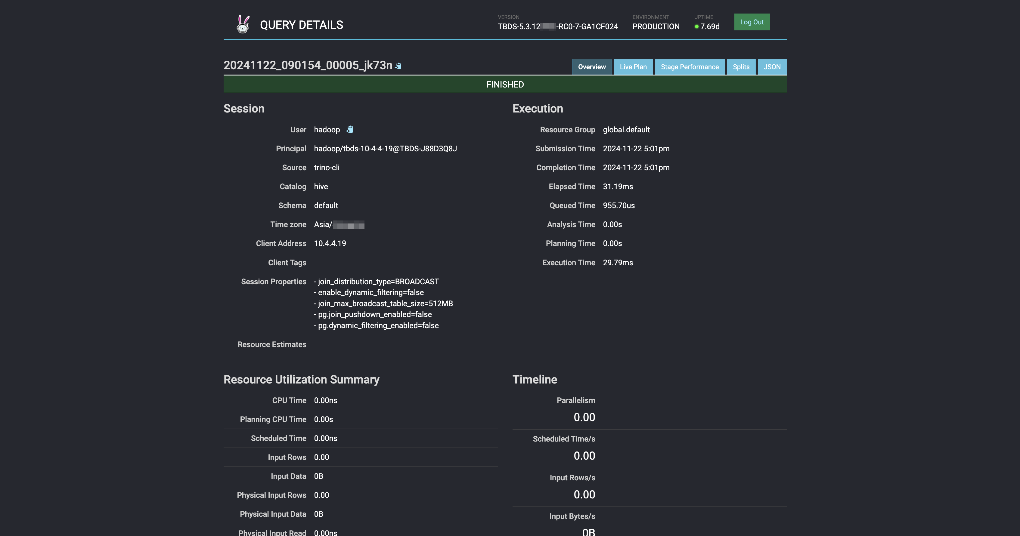 具体的任务详情,包括:SQL ,执行计划等;