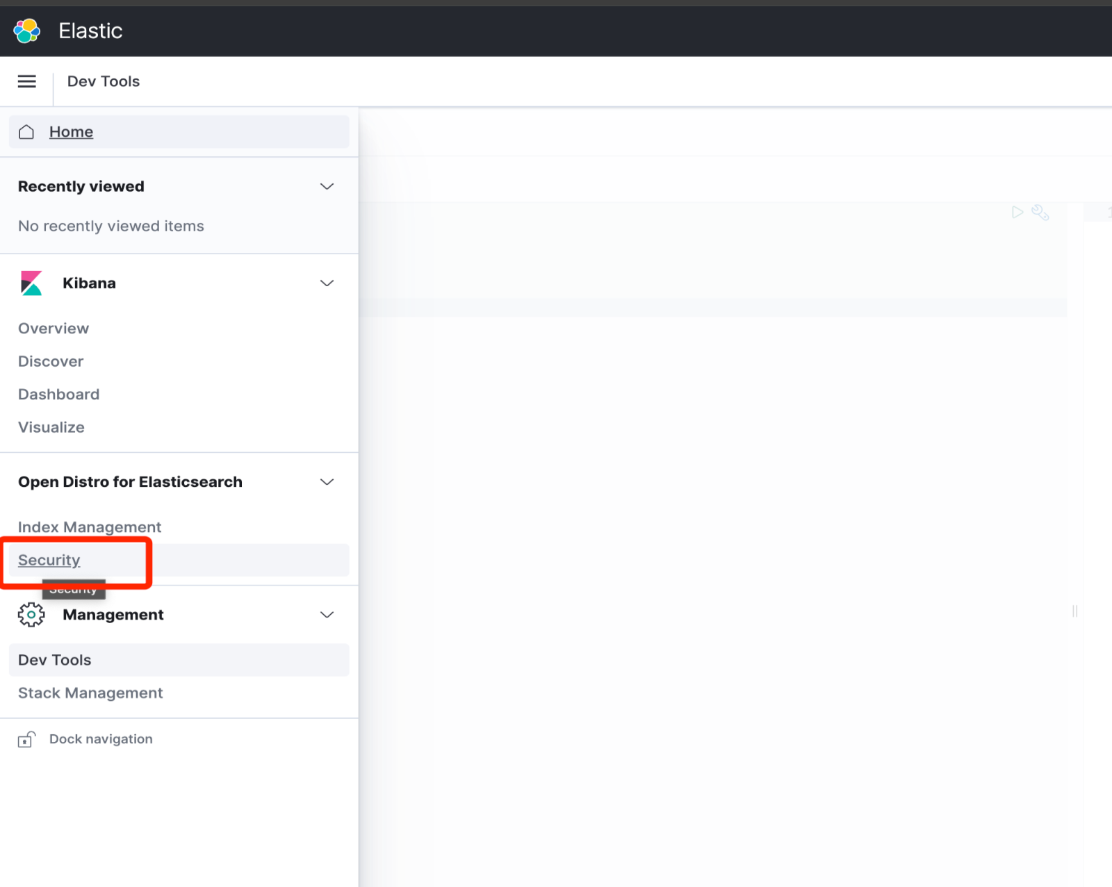 - 用超管用户登录 Kibana Web UI,单击导航栏“Security”。
