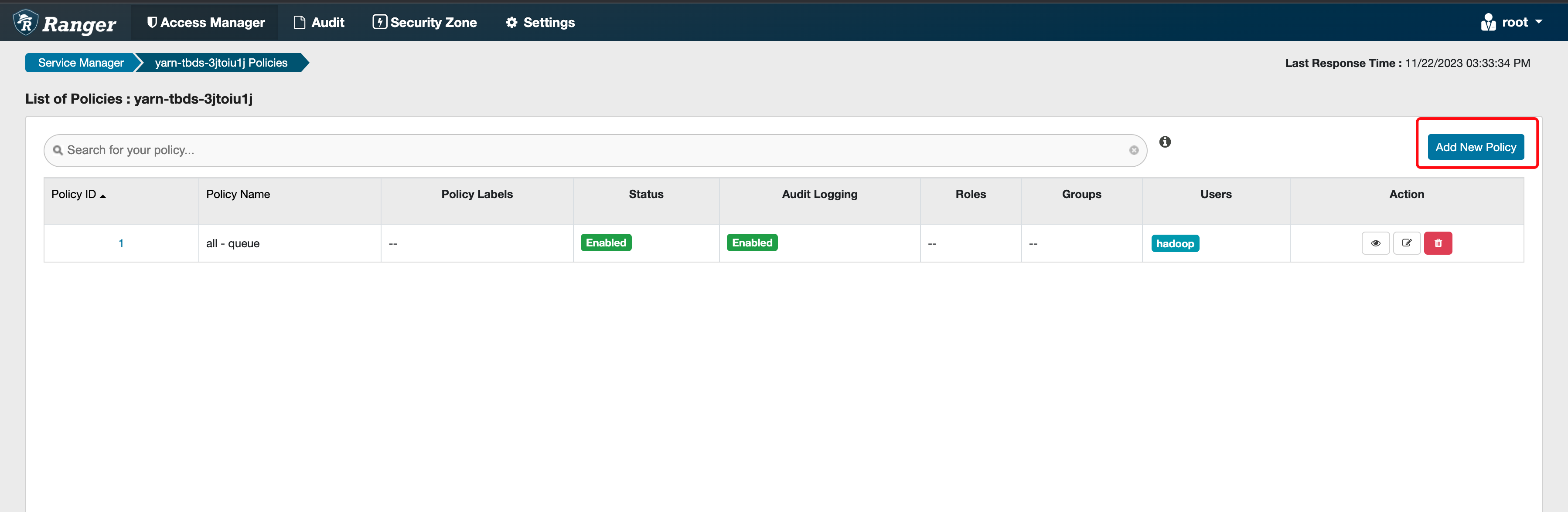 进入到需要授权的组件服务后,点击“Add New Policy”,填写对应组件的权限策略后保存,即可完成授权。