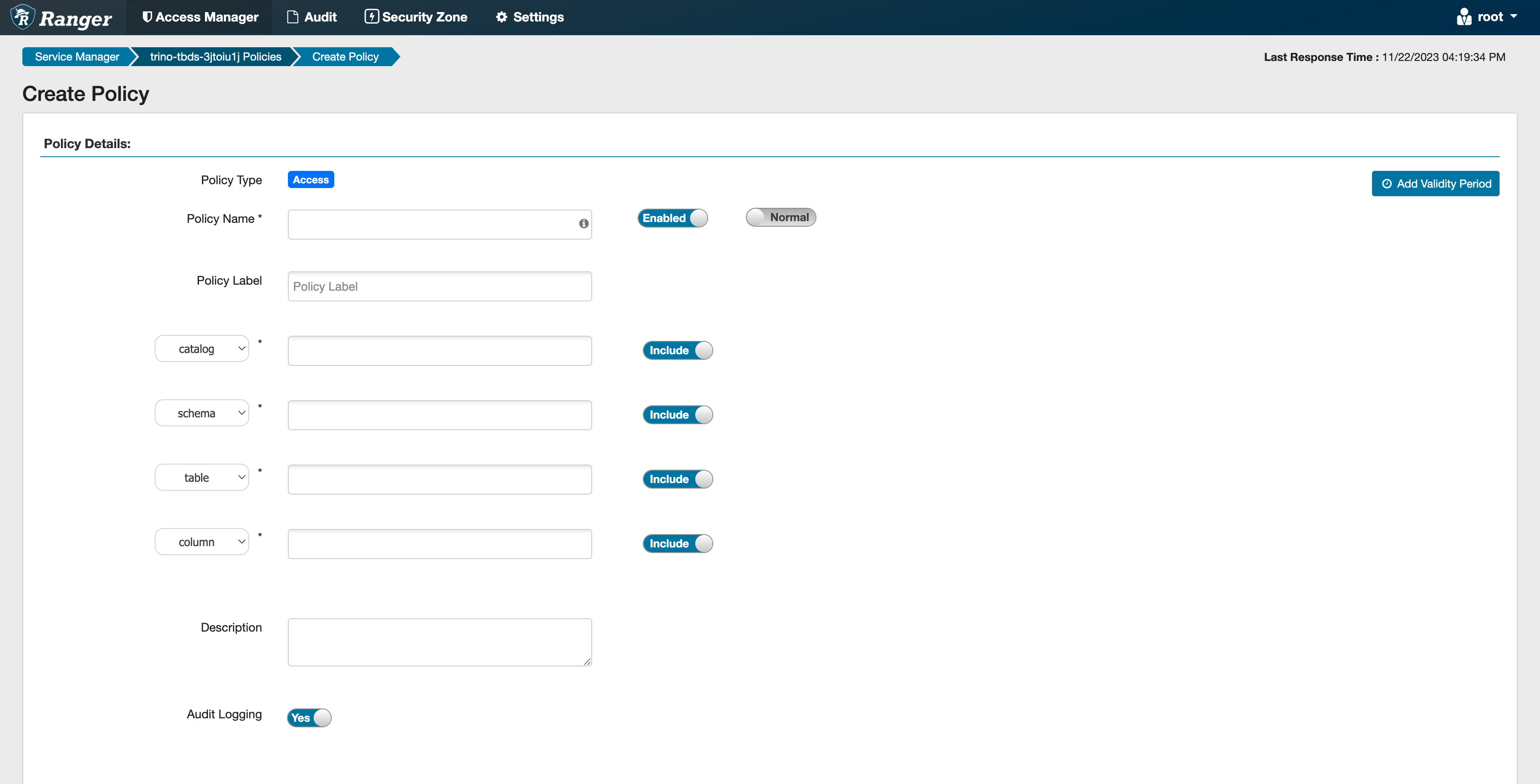 | HBase Table | 适用该策略的HBase表,支持通配符"*" “Include”策略适用于当前输入的对象,“Exclude”表示策略适用于除去当前输入内容之外的其他对象 |