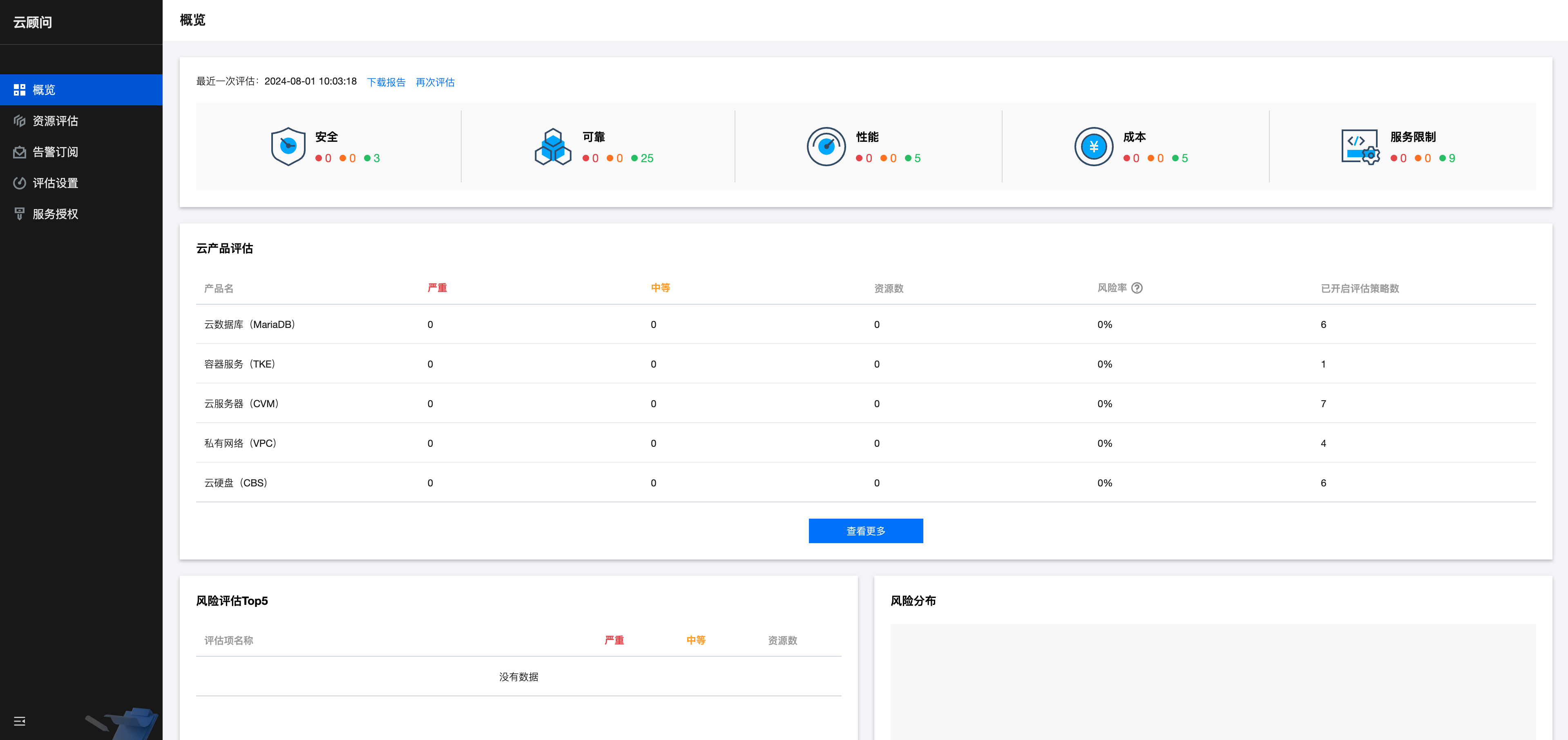 - 登录云顾问控制台,点击云顾问默认进入概览页面。