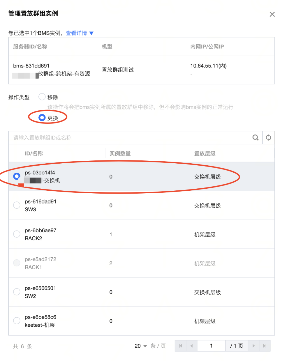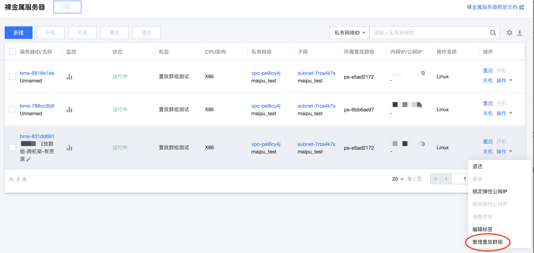 - 单击BMS实例操作列【更多】>【管理置放群组】。