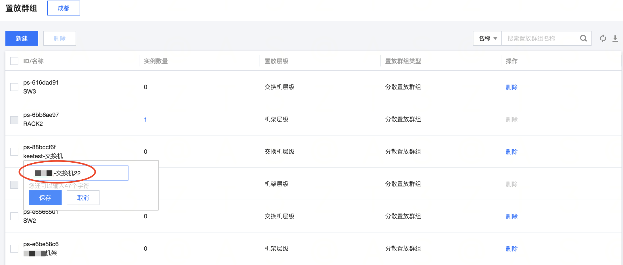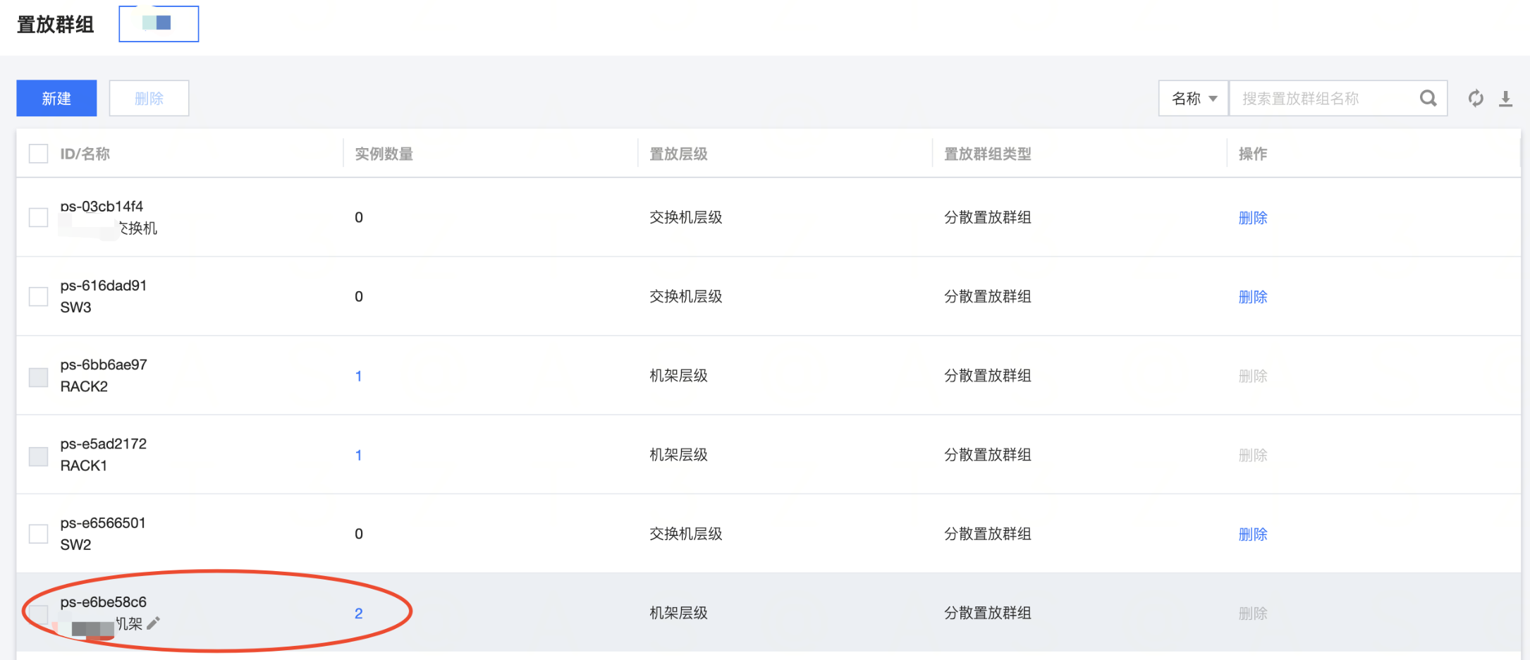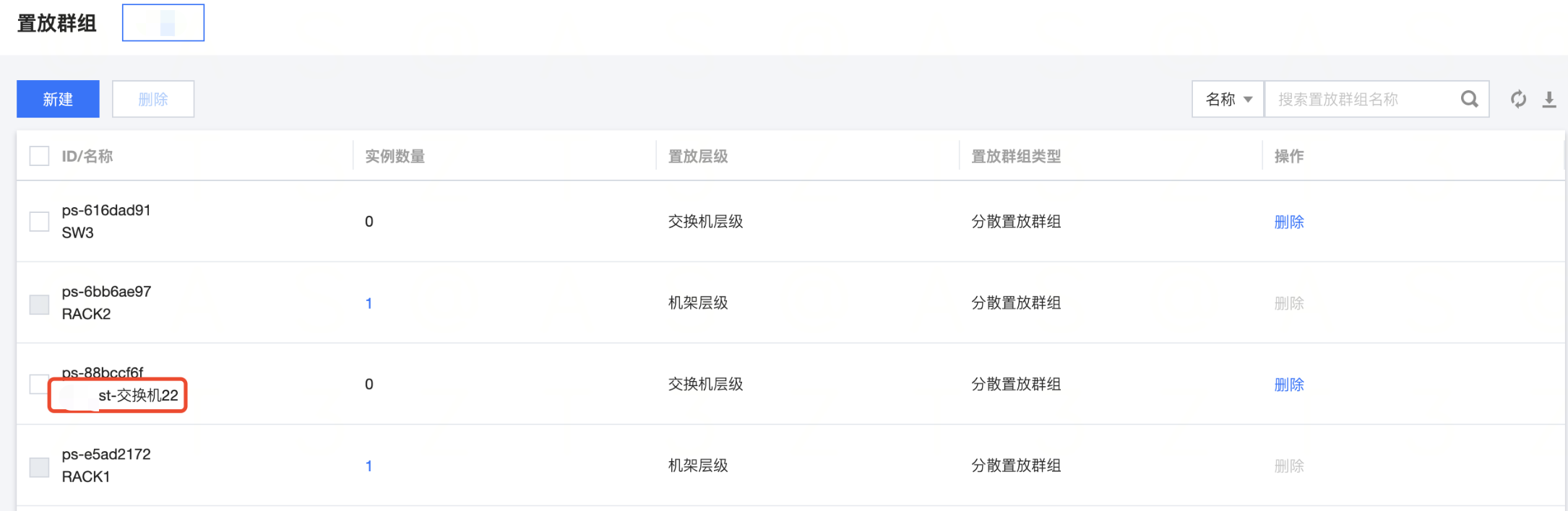 - 单击【确认】后,在列表页可查看到创建成功的置放群组。