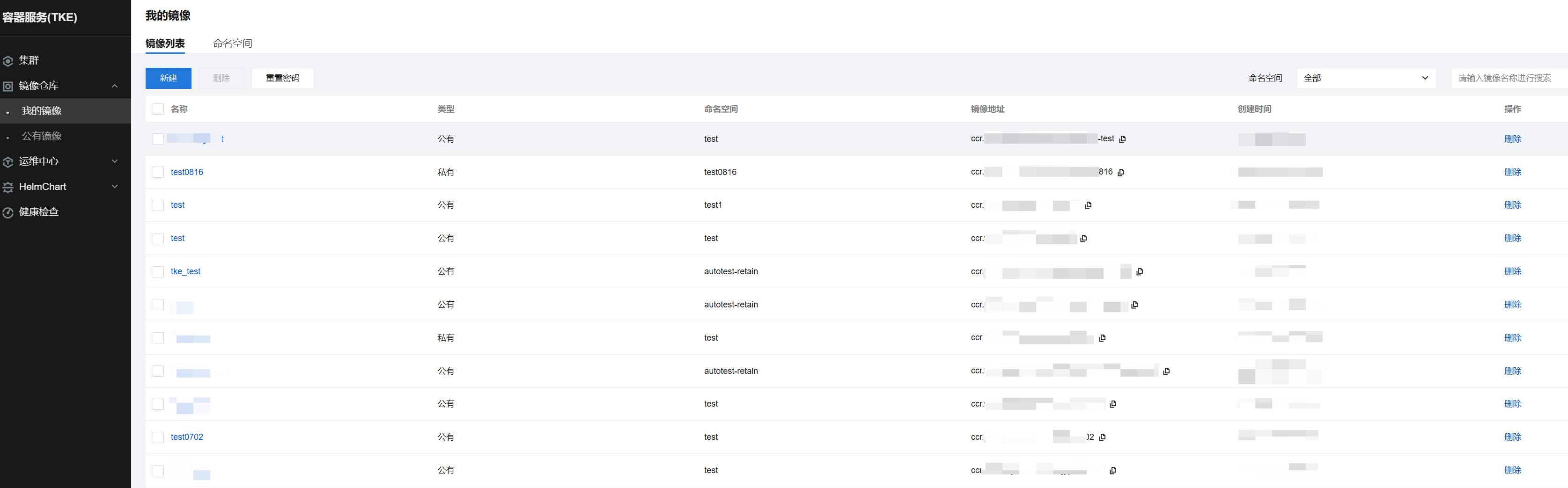 1. 选择左侧导航栏中的【镜像仓库】>【我的镜像】,进入“我的镜像”页面。