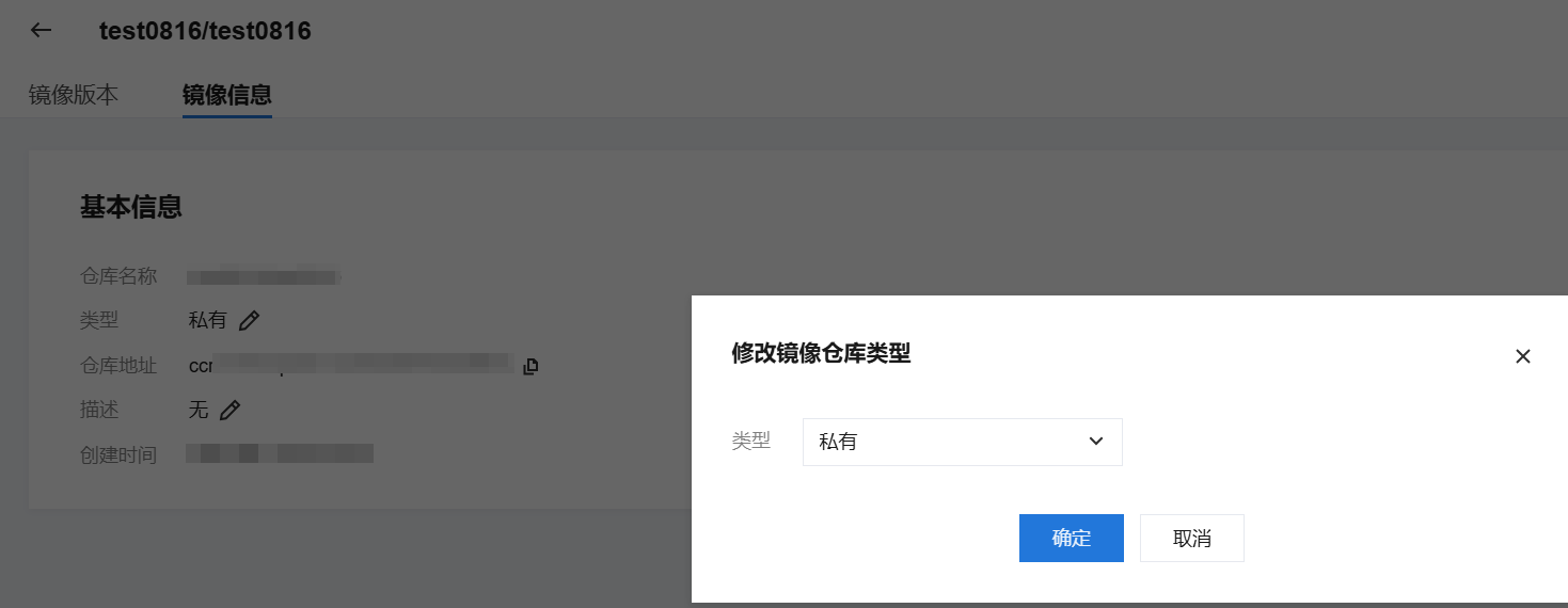3. 在弹出的“删除镜像仓库”窗口中,单击【确定】即可删除该镜像所有版本