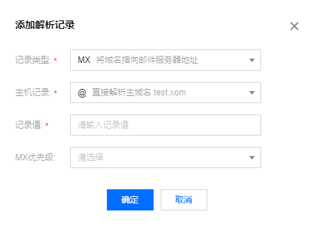 如果需要设置邮箱,让邮箱能收到邮件,就需要添加 MX 记录。本文档指导您如何添加 MX 记录。