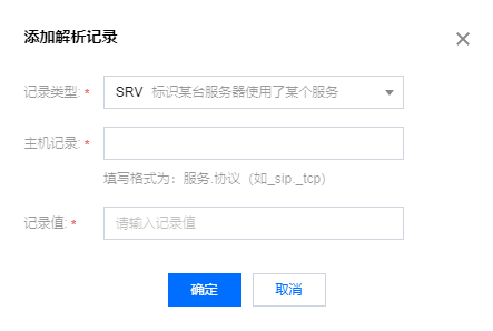 - 记录类型:选择 “SRV”。