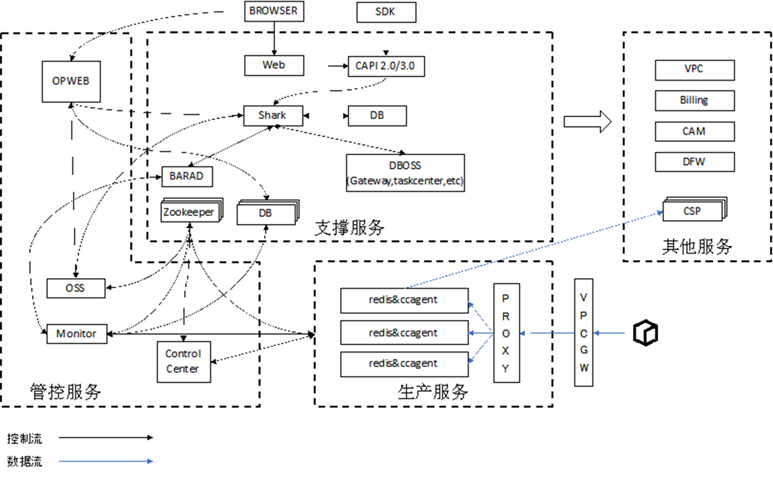 | Shark | 1. 协调Credis管控和其他系统(如 VPCGW等)的资源管理。 1. 处理CAPI发送的请求,并调用其他系统的接口,实现具体功能。 |