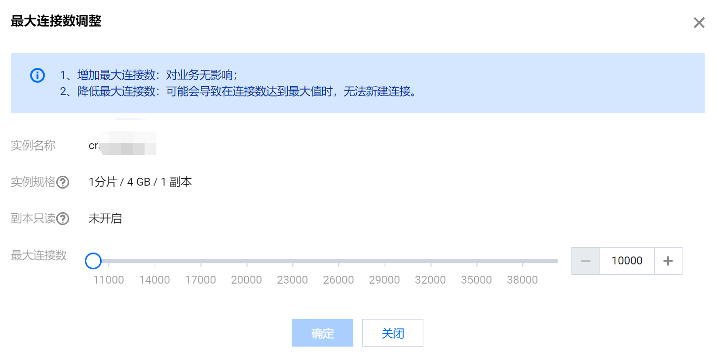 每个分片的最大连接数的取值范围为 [10000,40000]。 - 开启副本只读