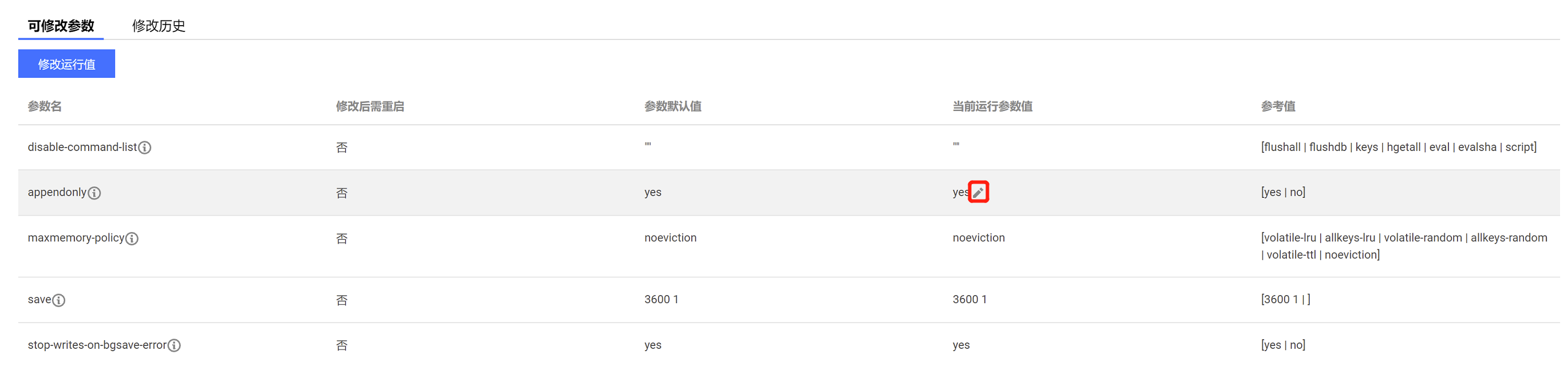 - 在【当前参数运行值】列,将鼠标放在参数值上,在其右侧将显示