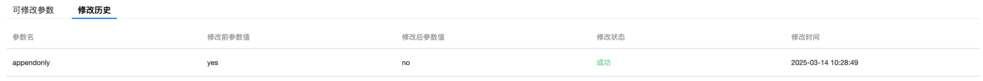 在参数配置页签,选择修改历史页签,可查看近期参数修改记录。