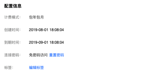 在实例列表,单击实例 ID 进入实例详情页,在配置信息的连接密码处,显示免密码访问,如下图所示,即已开通免密访问。