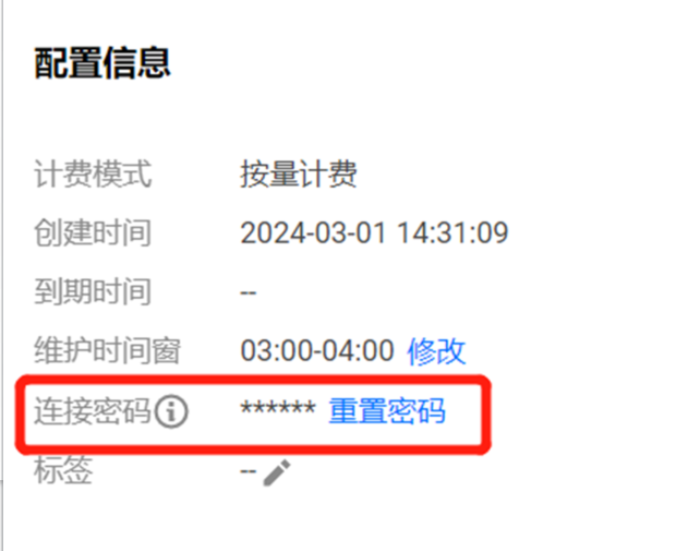 - 在实例列表,单击实例 ID 进入实例详情页,在配置信息的连接密码处,单击重置密码。