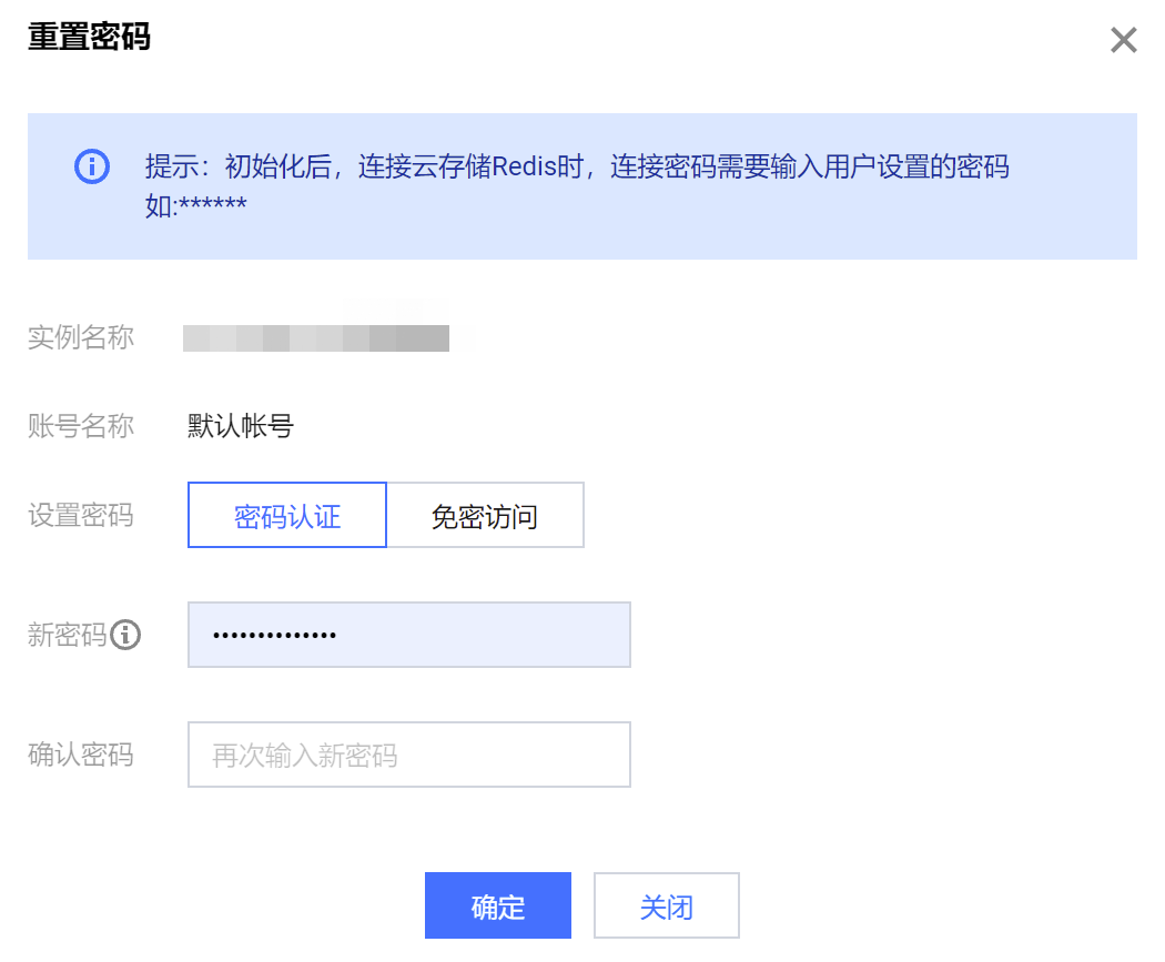 - 在实例详情页面的配置信息区域,单击连接密码右侧的重置密码,重置默认账号的密码。