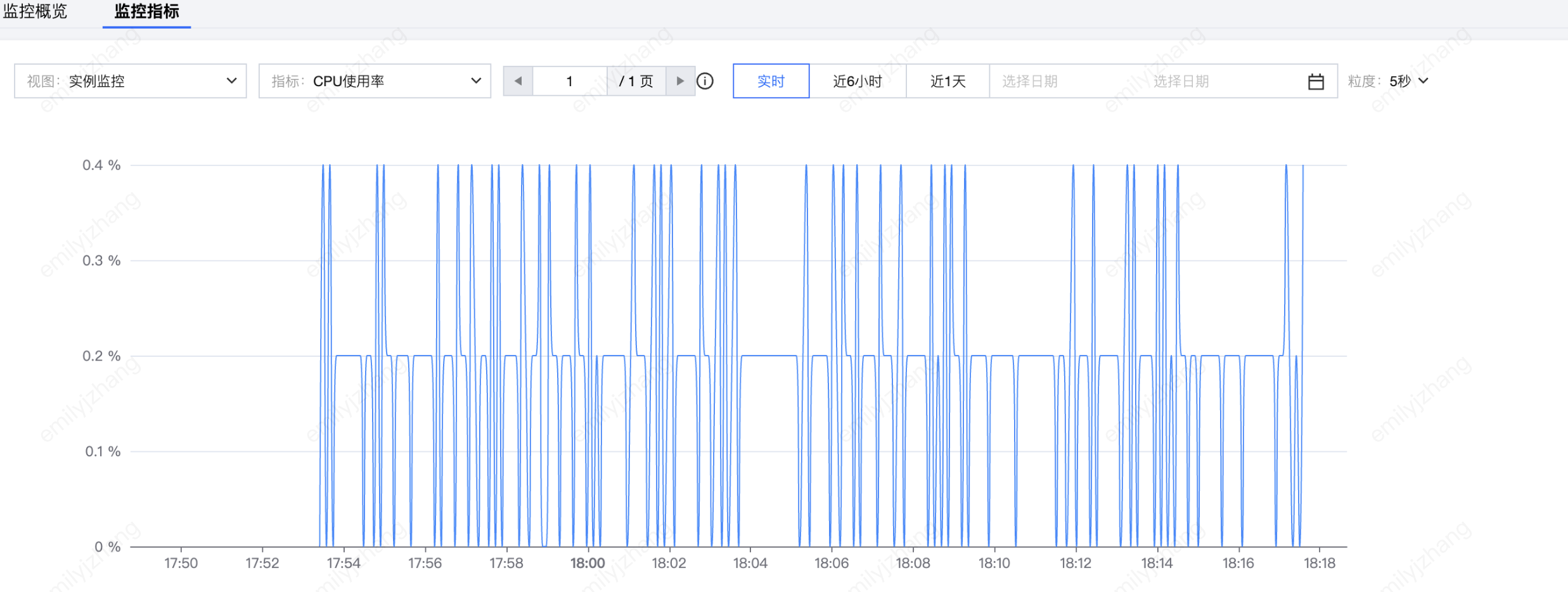 - 选择实时、近24小时、近7天或者任意时间段,您可以查看对应时间段内的监控数据。