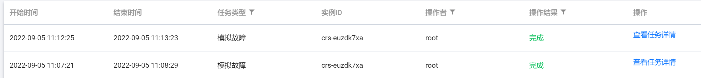 - 在左侧导航,单击任务管理,可等待任务执行完成。实例状态恢复为运行中,即说明模拟成功。