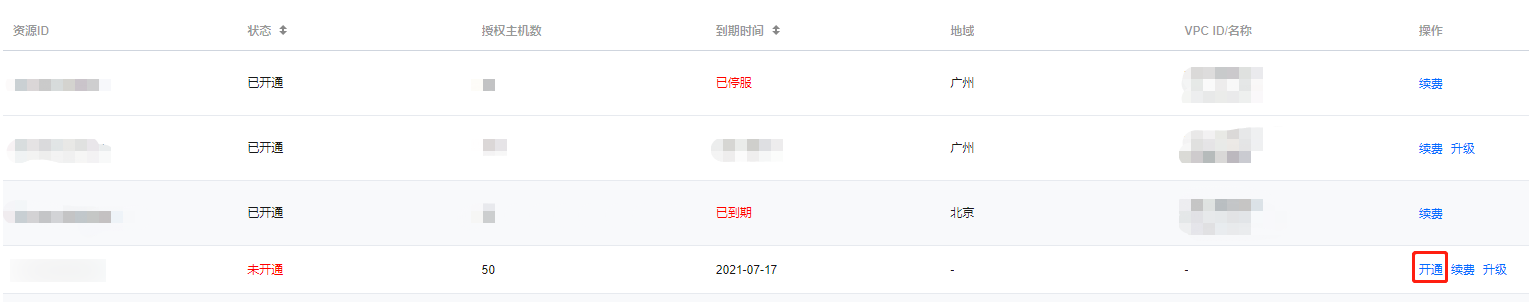 用户购买堡垒机服务之后,需要对其进行开通才可正常使用。在开通服务的过程中,需要指定服务所在的区域、VPC 和子网信息。