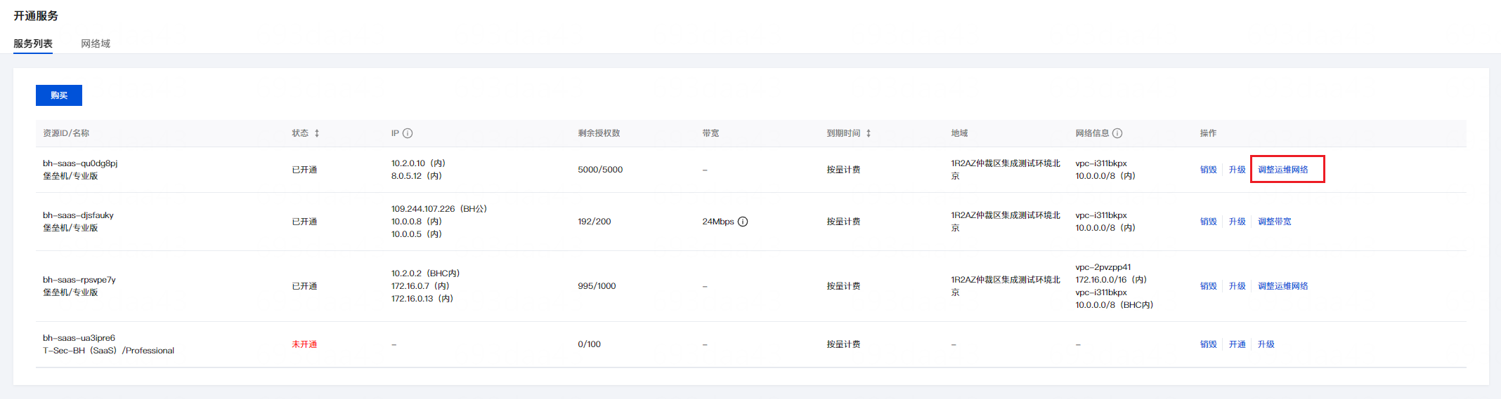 - 在服务列表页面,单击对应服务操作栏的调整运维网络。