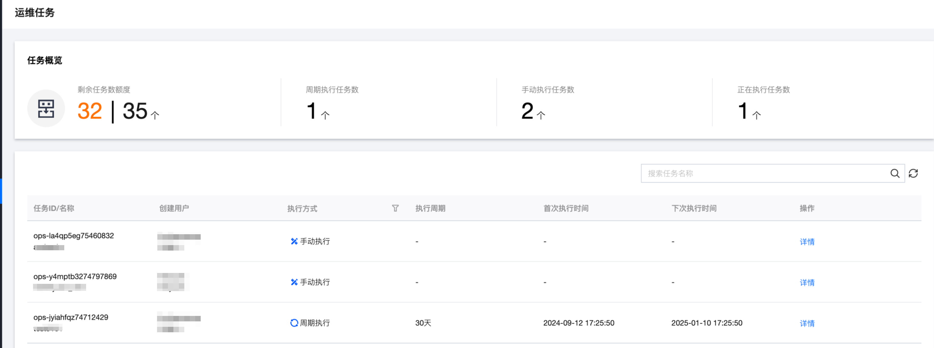 步骤2:点击详情,可查看自动化运维任务的详细情况。
