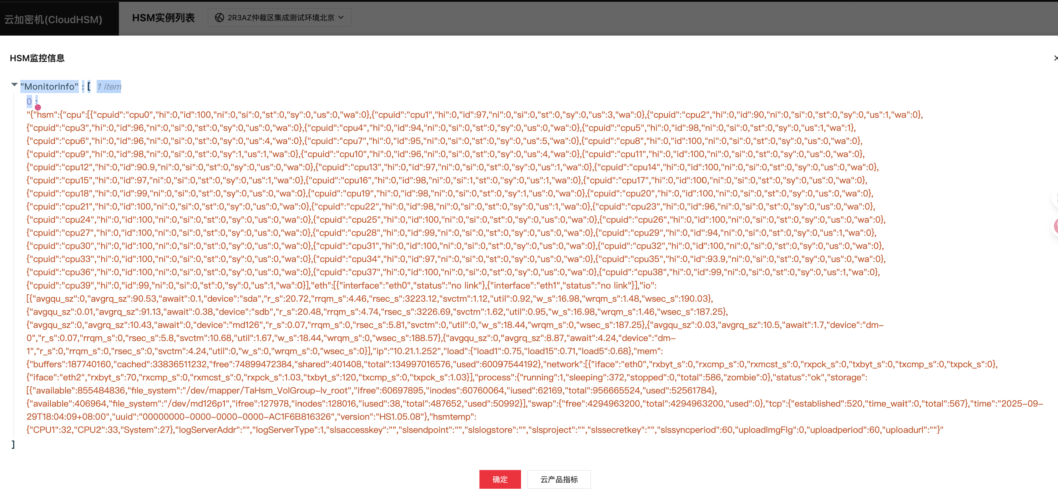 2、hsm管理-hsm实例列表,点击监控查看加密机资源使用情况。