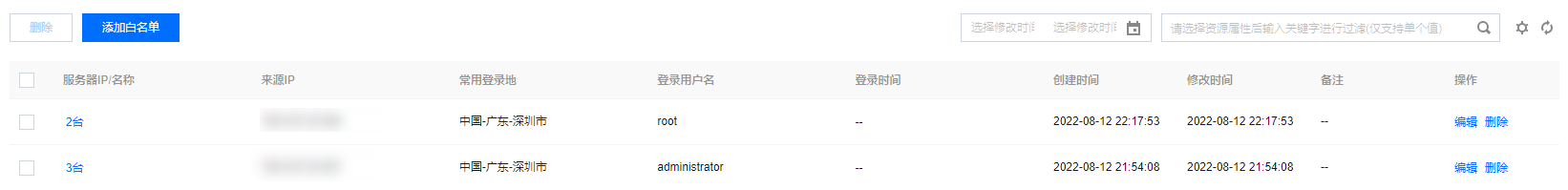 - 来源 IP:加白名单的登录来源 IP。