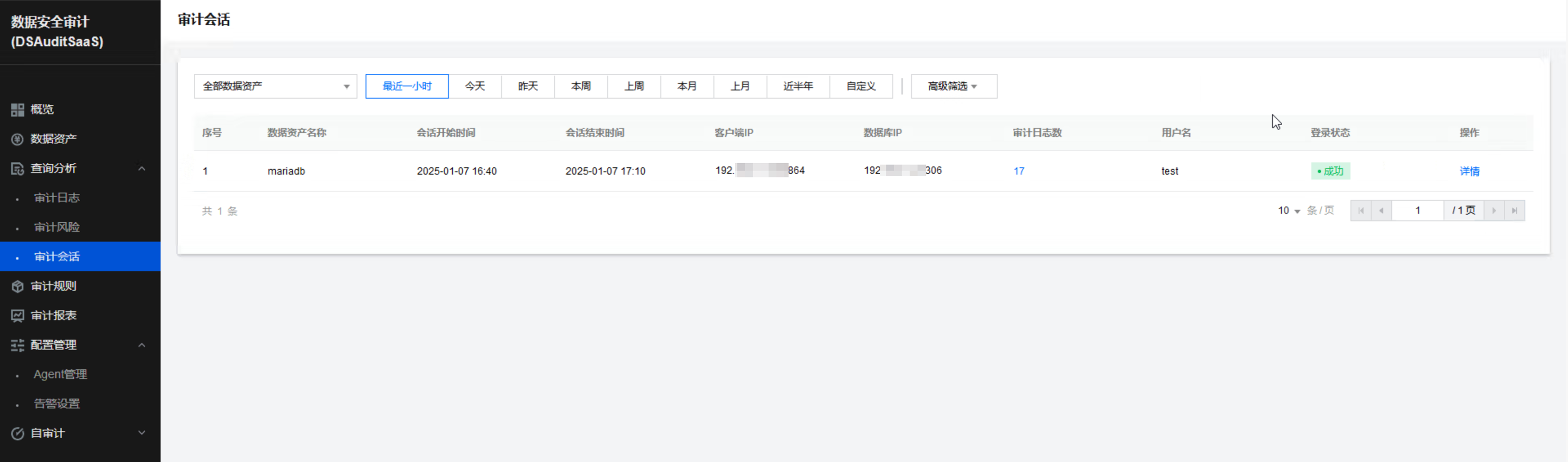 ,开启审计权限,允许数据安全审计采集其日志进行安全分析。