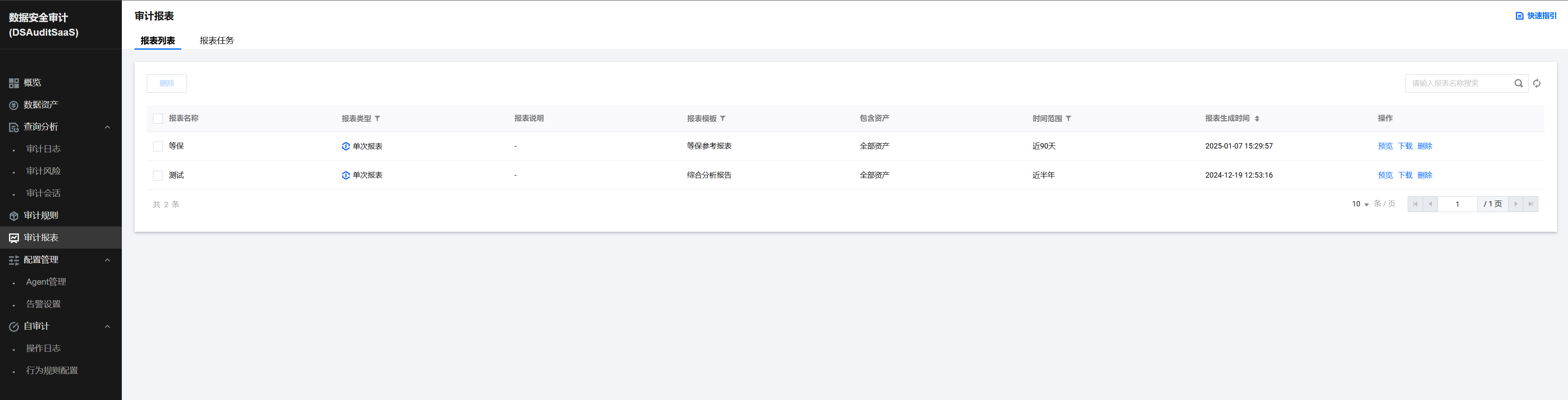 步骤2:在审计报告的报表列表中预览或者下载生成的审计报表。