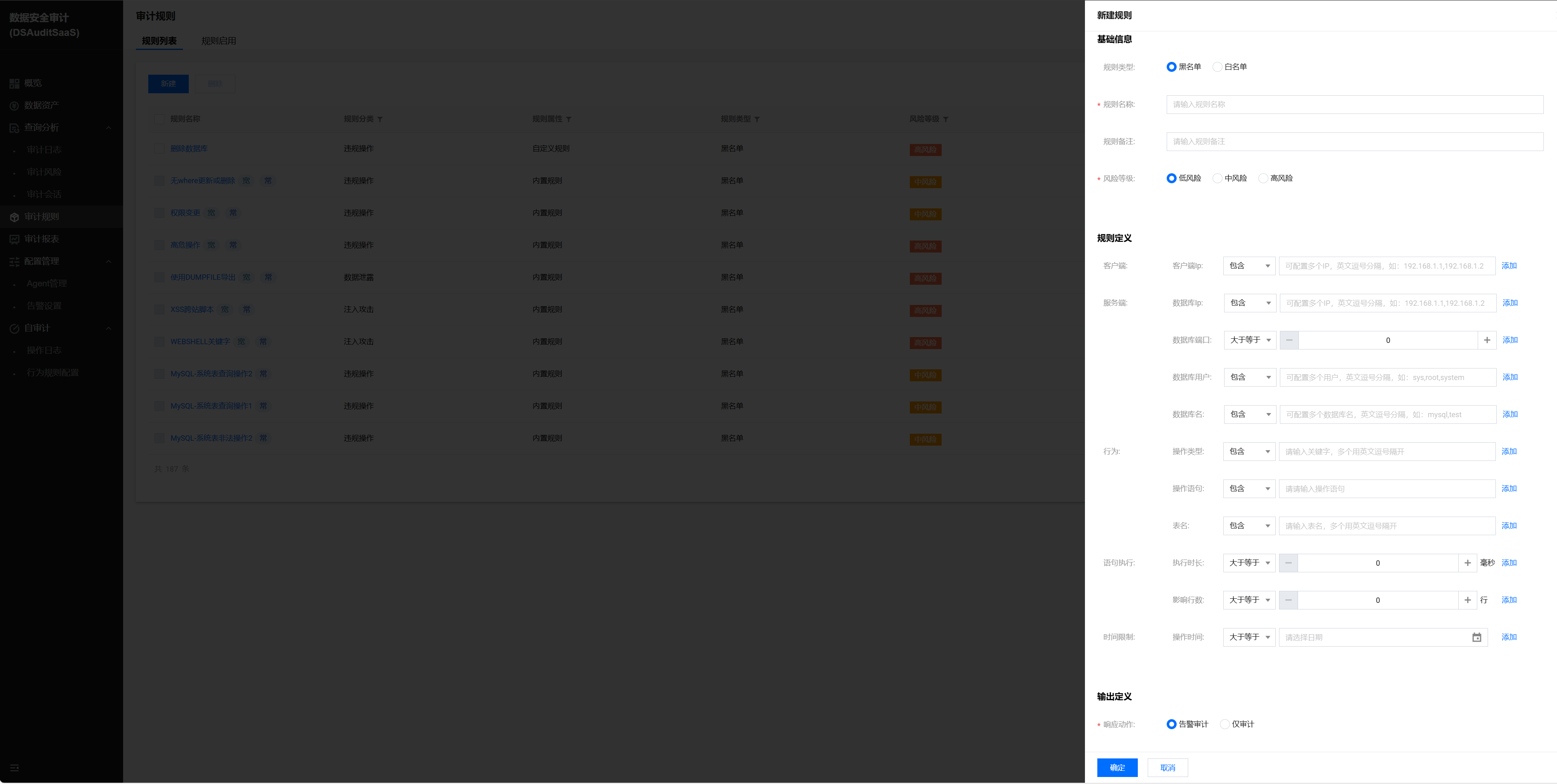 步骤1:在 审计规则 > 规则列表页面,可查看系统中的审计规则。
