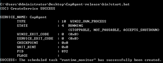 步骤3:执行成功后,Console 显示结果如下图所示。同时,可以在任务管理器中,看到CapAgentForWin.exe 进程。