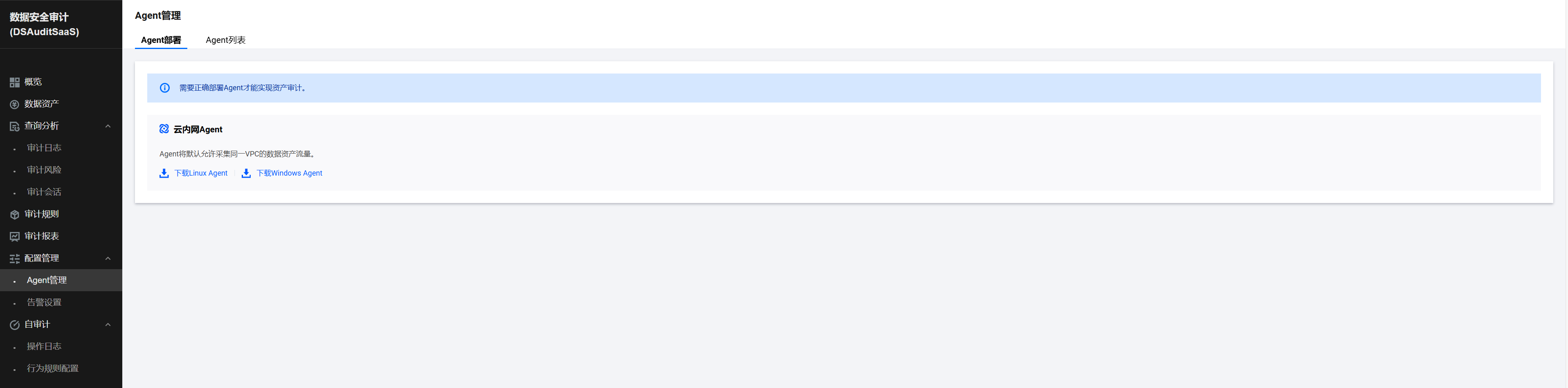 步骤1:完成资产添加,并开启审计权限后,进入 Agent 管理 > Agent 部署 页面。