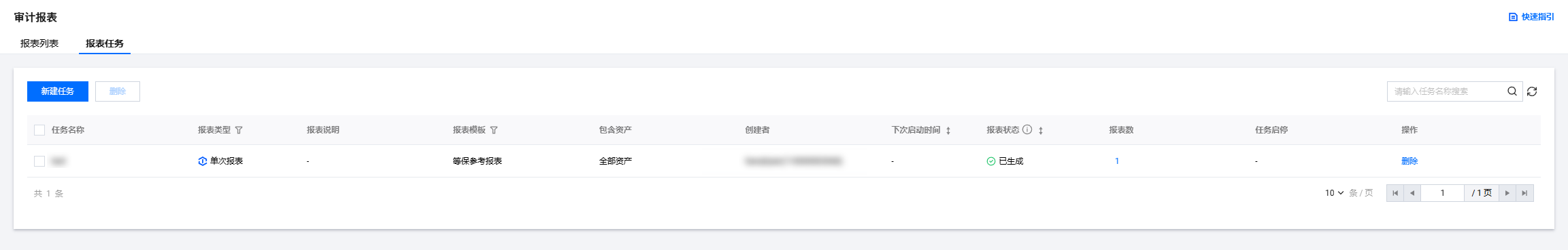 - 登录 数据安全审计控制台,在左侧导航栏中,单击审计报表 > 报表任务。