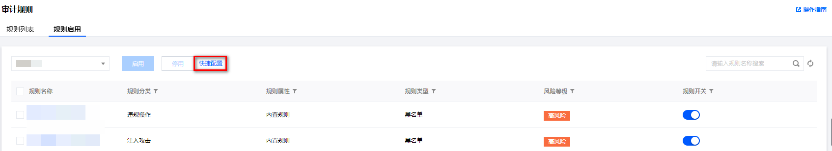 - 在规则启用页面,单击快捷配置,弹出快捷配置弹窗。